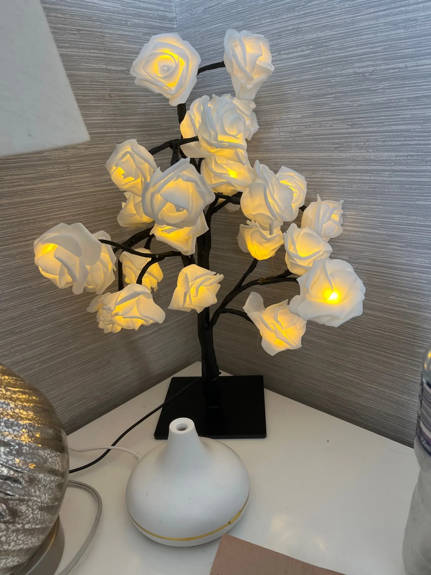 Illuminate your space with this elegant LED rose tree accent light, designed for versatile decorative use. Featuring warm fairy flower lighting powered by USB connectivity, this compact night light combines aesthetic appeal with practical functionality. The durable ABS construction meets international safety standards (CCC, CE, FCC, RoHS, UL, LVD), ensuring reliable performance. Operating at 3V with energy-efficient LED technology, it's ideal for bedroom ambiance, holiday displays, festive gatherings, or special event décor. Switch-controlled for convenient on-off operation. A thoughtful gift for those seeking ambient lighting that blends style with everyday utility.